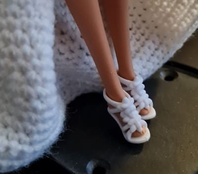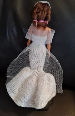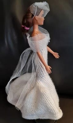 Charmanterobe de marie, de jolies chaussures finissent la tenue. J’ai eu le plaisir de faire cette robe au crochet. Votre enfant sera ravi de jouer cette tenue.