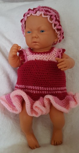 Adorable robe rose pour poupée de 40 cm . cette jolie tenue a été faite crochet à la main. Très facile pour l’habillage car l’enfant peut tirer dessus aucune attache dangereuse. Habits lavables en machine dans un sac à lingerie sur programme laine, ne pas mettre au sèche linge.