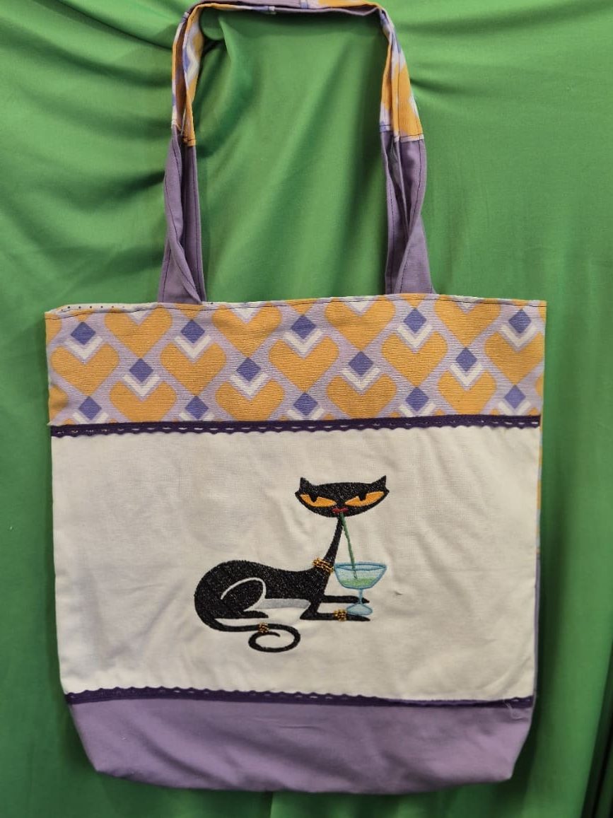 Signé Ycreations il est accompagne d’une trousse ici :https://ybcreations.fr/produit/sac-brode-chat-miss-daisy-cocktail/