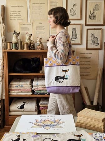 Visuel Iconique : Le sac arbore une silhouette de chatte stylisée savourant son cocktail, symbole de détente et de chic rétro.