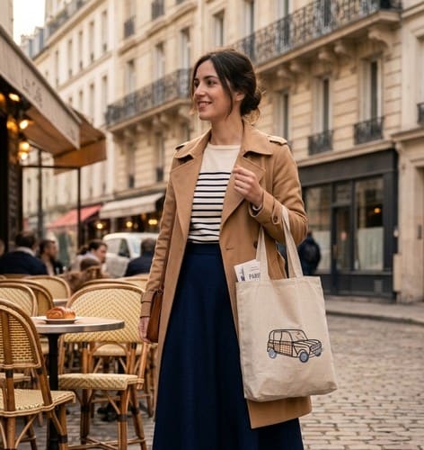 L’esthétique est une célébration du rétro-chic : sur une toile de lin naturel de haute tenue, la broderie noire dessine avec une précision chirurgicale la silhouette indémodable de la 4L Parisienne. L’alliance de la sobriété du tissu et du graphisme iconique de la voiture crée une structure équilibrée et distinguée. C’est le sac idéal pour celles qui portent leur histoire avec fierté et élégance, que ce soit dans les rues de Seine-Saint-Denis ou sur la côte Atlantique.