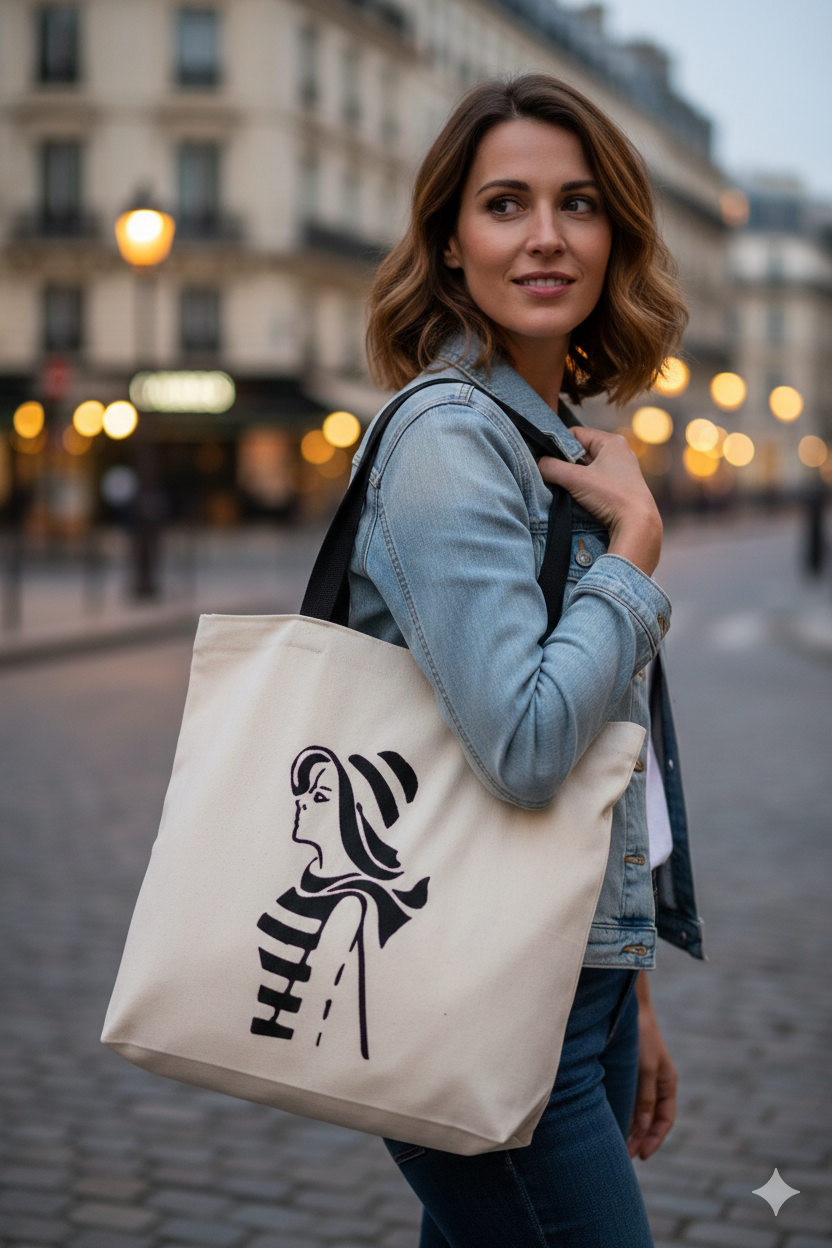 Au cœur de cette création se trouve une broderie exclusive, entièrement imaginée et créée par mes soins. Ce dessin minimaliste représente une silhouette de femme glamour, aux traits fins et au style affirmé. Parce que chaque broderie est une création personnelle, votre sac est unique au monde et le restera.