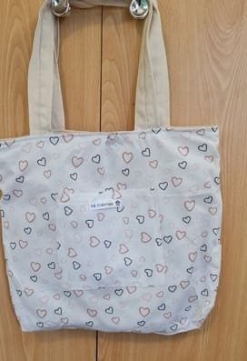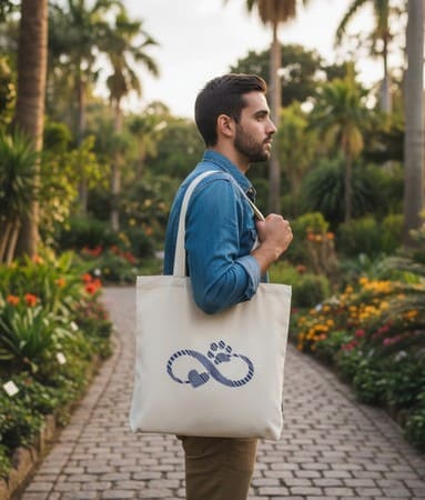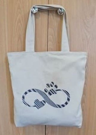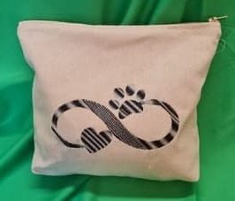 L’éclat naturel d’une toile écrue sert d’écrin à une broderie d’un bleu profond, où le signe de l’infini enlace tendrement un cœur et une empreinte. Cette alliance de tissus offre une esthétique à la fois brute et raffinée, évoquant une élégance sans artifice.