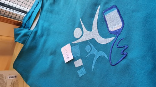 Signature YB : La précision de la broderie apporte un contraste moderne sur ce bleu vif, affirmant un savoir-faire authentique et « fait maison ».