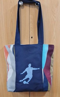 L’esthétique est celle du mouvement victorieux : sur un bleu marine profond, la broderie centrale met en scène un ballon de football stylisé, propulsé par un élan dynamique et souligné par l’inscription « LE TOUJOURS ». L’alliance du textile robuste et de ce motif puissant crée un contraste moderne, affirmant un caractère conquérant et passionné.