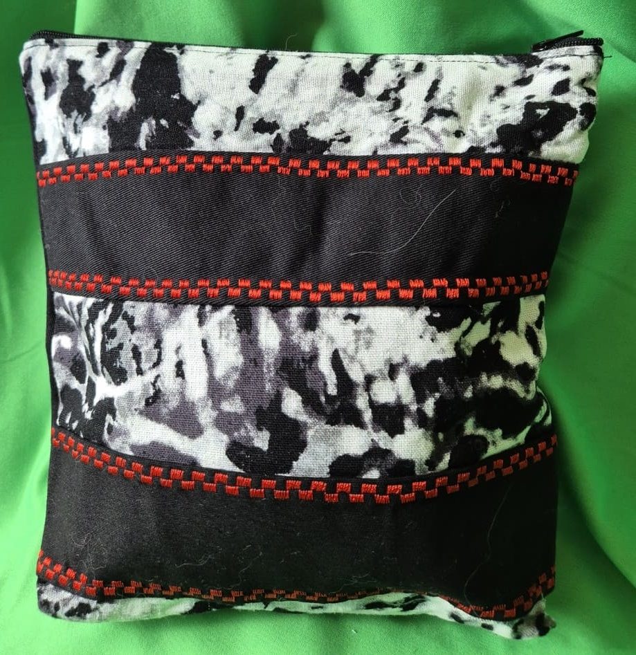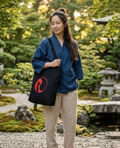 L’esthétique est une leçon de dualité : sur un tissu noir de jais, symbole de l’infini et du mystère, se déploie une broderie circulaire d’un rouge vibrant. Le motif revisite le symbole millénaire avec une fluidité organique, évoquant le mouvement perpétuel de l’énergie (le Qi). Le contraste saisissant entre le fond sombre et le graphisme écarlate crée un point focal puissant, presque magnétique.