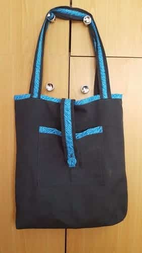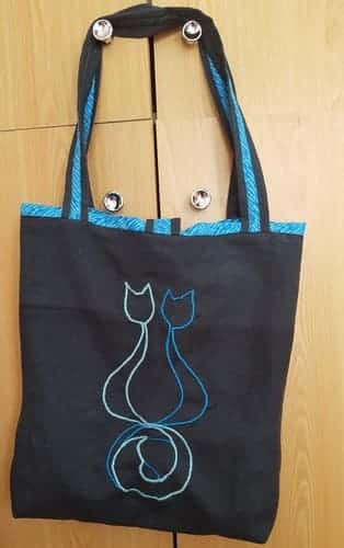 Esthétique Contrastée : Les bordures et les anses bleu turquoise apportent une touche de lumière et de modernité, rappelant les couleurs des fils utilisés pour la broderie.
