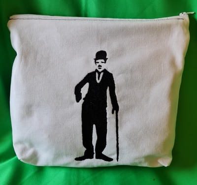 Maîtrise Créative Totale : Pour cet ensemble, j’ai assuré chaque étape de la création. J’ai entièrement dessiné le portrait de Charlot, réalisé la broderie et assuré toute la couture de chaque pièce dans mon atelier.
