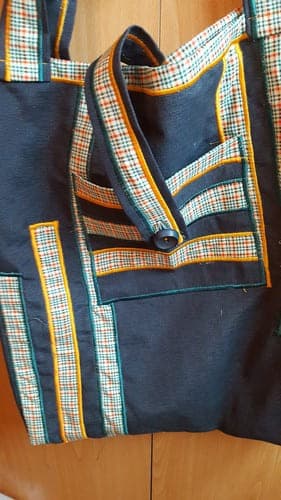 Comment ne pas craquer pour ce sac incrustation carreau. Il vous accompagnera au quotidien !! Vous pourrez y mettre pleins de choses… les affaires de plage, de sport, tes légumes du marché, des documents etc