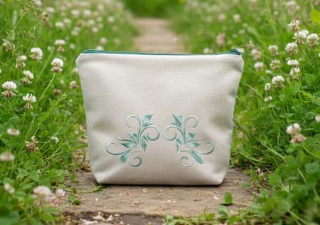 Le décor de cette trousse est orné de fleurs délicates aux nuances bleues, une broderie machine personnelle que j’ai moi-même imaginée et numérisée. Ce motif exclusif fait de chaque trousse une pièce unique : vous ne trouverez nulle part ailleurs ce dessin précis, né de mon propre savoir-faire créatif. C’est l’assurance de posséder un accessoire artisanal qui possède une véritable âme.